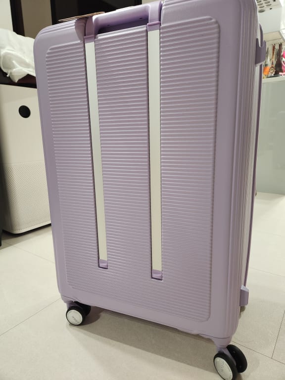 아메리칸투어리스터 맥시보 28인치! 너무 만족합니다. 확장 가능한 2:8 수납 구조와 TSA 잠금장치, 듀얼 보안 지퍼로 실용성과 보안성을 갖춘 캐리어~ 매우 부드럽게 굴러가는 바퀴와 고정 브레이크와 사소한 걸이(백) 디테일까지, 거기에 사랑스러운 라벤더 컬러까지 더해져 8월 중하순에 가게 되는 여행에 즐겁게 사용하고 오려고 합니다.